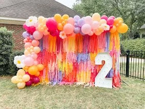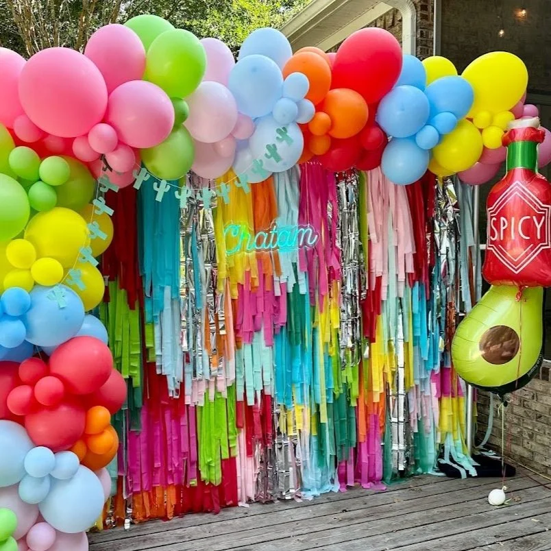Our fringe stripe walls are a great option to layer with arch backdrops or favor wall and consist of 6 fringe colors.