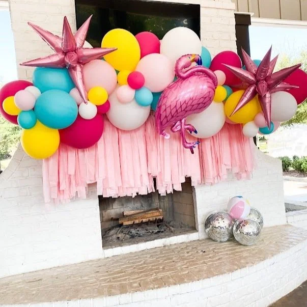 Make a statement with our aerial fringe! 7’ fringe strips hanging from the ceiling, bounce house, patio cover… the possibilities are endless.